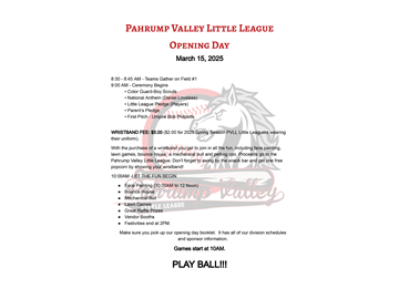 Pahrump Valley Little League #4280312 P.O. Box 6718 Pahrump, Nevada 89041